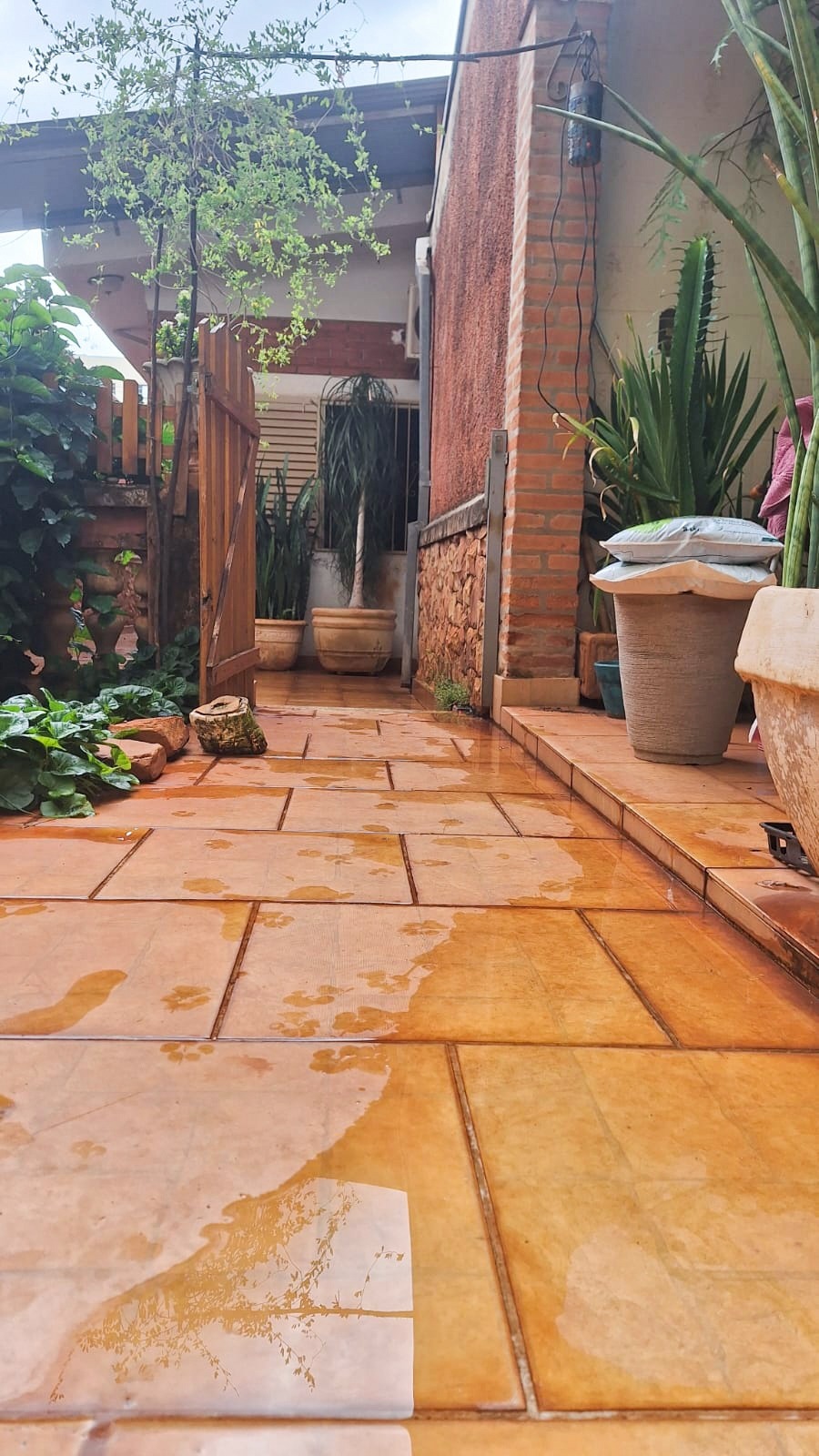 Na área externa, no fundo da casa possui um jardim, uma área coberta, um dormitório ou depósito e uma excelente piscina.
